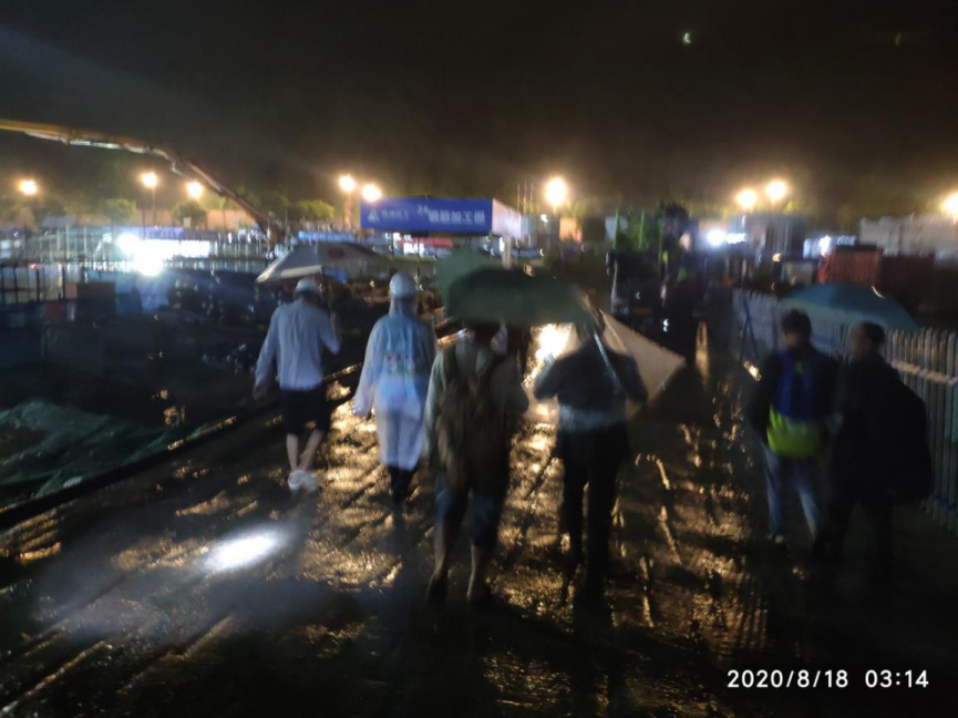 精誠(chéng)團(tuán)結(jié)。“嗚嗚嗚.....”,8月18日凌晨2:30,會(huì)博館項(xiàng)目現(xiàn)場(chǎng)10多名工人正在配合商混泵車(chē)澆筑混凝土,此時(shí)蔡銳接到上級(jí)通知“即將迎來(lái)水位上漲,要求會(huì)展項(xiàng)目人員馬上撤離!”,由于當(dāng)晚項(xiàng)目現(xiàn)場(chǎng)正在通宵澆筑12區(qū)抗水板混凝土,項(xiàng)目現(xiàn)場(chǎng)有管理人員30余名、項(xiàng)目工人60余名,此時(shí)混凝土澆筑工作還需約2小時(shí)才能完成。她第一時(shí)間通知應(yīng)急救援領(lǐng)導(dǎo)小組和項(xiàng)目管理人員“立刻啟動(dòng)緊急避險(xiǎn)措施,時(shí)刻觀察水位,快速組織現(xiàn)場(chǎng)所有人員撤離!”。她賡即趕到現(xiàn)場(chǎng),與應(yīng)急救援領(lǐng)導(dǎo)小組一同組織現(xiàn)場(chǎng)人員有序撤離。為防止中斷澆筑造成項(xiàng)目損失,現(xiàn)場(chǎng)項(xiàng)目管理人員不愿撤離,但汛情就是命令,蔡銳帶領(lǐng)應(yīng)急救援領(lǐng)導(dǎo)小組堅(jiān)持生命至上原則,做好項(xiàng)目管理人員思想工作,緊張、團(tuán)結(jié)、有序分班組集合點(diǎn)名、分批撤離項(xiàng)目工人,截止凌晨4:48,90余名現(xiàn)場(chǎng)人員全部安全撤離。