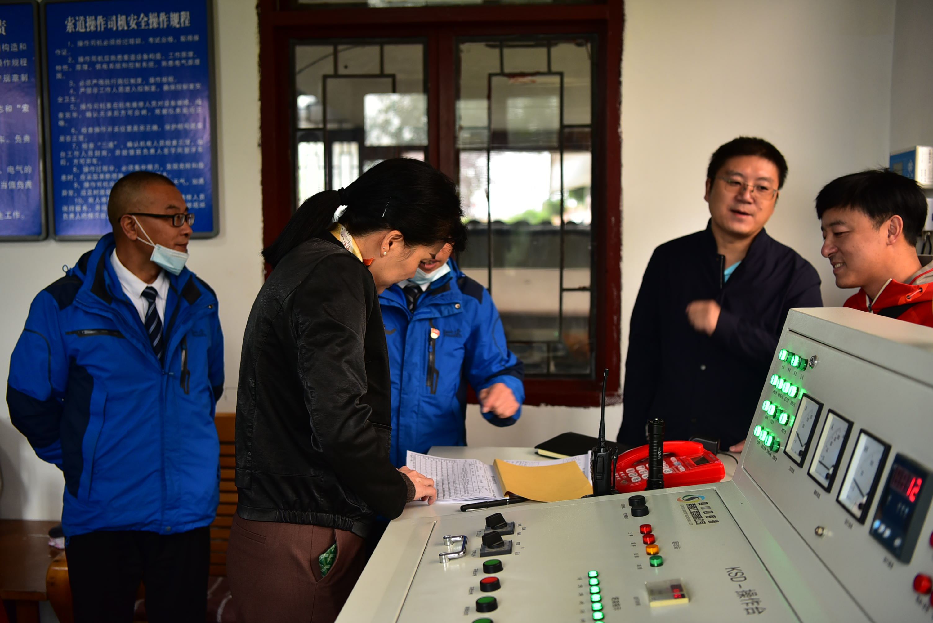 在現(xiàn)場,檢查組一行先后檢查了蒙頂山景區(qū)索道運營情況及景區(qū)各類設(shè)備檢查記錄等資料。蔣蘭詳細聽取了蒙頂山景區(qū)特種設(shè)備的檢查維護、安全應(yīng)急演練等安全生產(chǎn)、管理情況。