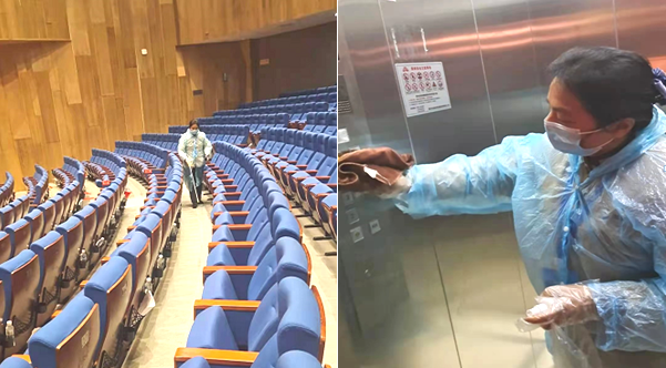 按市疾控中心消殺防疫工作要求,認(rèn)真開(kāi)展疫情防控工作。一是認(rèn)真開(kāi)展體溫監(jiān)測(cè),每日為員工監(jiān)測(cè)體溫并做好登記,發(fā)現(xiàn)體溫異常及時(shí)上報(bào);二是按疫情防控要求認(rèn)真開(kāi)展消殺工作,每日會(huì)前、會(huì)后對(duì)會(huì)議桌桌面、座椅扶手、過(guò)道、電梯、客房等區(qū)域進(jìn)行消殺,做好消殺記錄,現(xiàn)場(chǎng)拍照并按時(shí)上報(bào)疾控中心;三是防疫物質(zhì)儲(chǔ)備到位到點(diǎn),在會(huì)場(chǎng)門(mén)口、餐廳、房間等區(qū)域放置口罩、消毒濕紙巾、消毒凝膠等防疫物質(zhì),安排專人主動(dòng)為代表們提供防疫物質(zhì)服務(wù)。