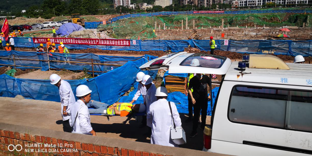 本次演練模擬雅安熊貓會(huì)展博覽館施工現(xiàn)場(chǎng)汛期險(xiǎn)情,防洪防汛應(yīng)急演練組分為:疏散保衛(wèi)組、醫(yī)療救治組、物資保障組、應(yīng)急救援組和信息發(fā)布組?,F(xiàn)場(chǎng)模擬演練周公堰河水因連續(xù)暴雨導(dǎo)致河水上漲,漫過(guò)堰堤,雅安熊貓會(huì)展博覽館基坑作業(yè)面大量進(jìn)水,項(xiàng)目安全負(fù)責(zé)人確認(rèn)險(xiǎn)情后,立即啟動(dòng)防汛應(yīng)急預(yù)案。各小組迅速到位,疏散保衛(wèi)組負(fù)責(zé)有序退場(chǎng)、醫(yī)療救治組負(fù)責(zé)救治傷員、物資保障組負(fù)責(zé)物資轉(zhuǎn)移、應(yīng)急救援組負(fù)責(zé)現(xiàn)場(chǎng)救援、信息發(fā)布組負(fù)責(zé)險(xiǎn)情報(bào)送。防洪防汛應(yīng)急演練組分工明確、各盡其責(zé),經(jīng)過(guò)一系列應(yīng)急救援工作,全面完成了基坑內(nèi)水的抽排、來(lái)水方向圍堰截流封堵、引流和突發(fā)電器設(shè)備火災(zāi)等三項(xiàng)突發(fā)事件的處置,應(yīng)急響應(yīng)終止。